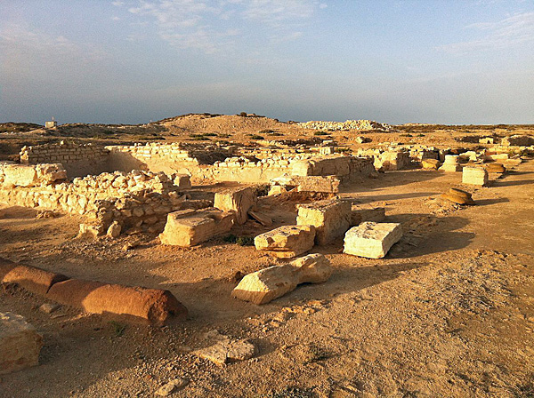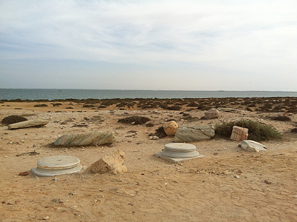 Reste eines Mosaiks, Teile von Marmorsäulen, verzierte Friesreste und eine karge Landschaft, das sind die einzigen Fundstücke hier vor Ort. Ein